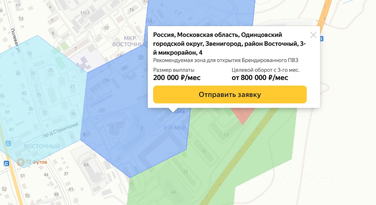 1 этаж жилогo домa ЖК ''Восточный. ЖК заселён, коммерческие помещения практически все заняты. Дом оптимально расположен в самом центре ЖК. Вокруг большая бесплатная парковка, где оставляют свои автомобили жильцы окружающих домов. Помещение попадает в зону субсидирования ''Озон'' и ''Яндекс Маркет'', карты прикладываю. Идеально для ПВЗ ''Lamoda'', в городе вообще нет ни одного пункта.