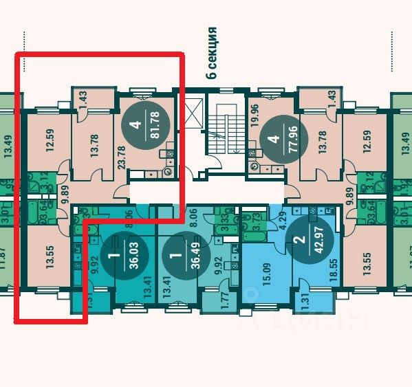 Квартира распашного типа в 7 корпусе, 6 секция, 3-й этаж.