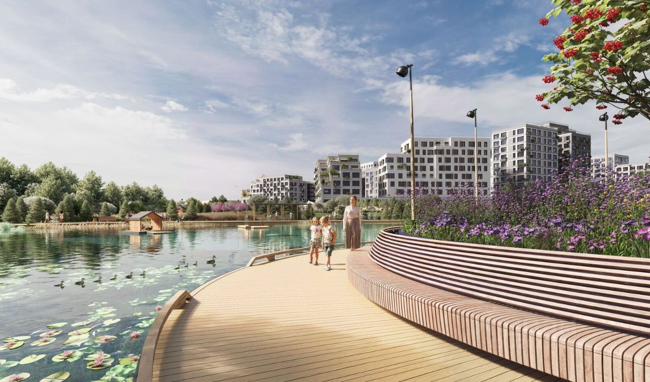 Благоустройство - авторские лобби, - уютные зоны ожидания и библиотека, - велосипедные и лыжные маршруты, - собственная набережная и парк, - лаунж-зоны в окружении природы, - беседки у очага, - дворец спорта площадью 20 000 кв. м, - термальный комплекс с тремя бассейнами, - 4 теннисных и падел-корта, - 6 сквош-кортов, - многофункциональный спортзал, - скейт-парк, - просторная площадь для прогулок с фонтаном, - детский клуб с творческими секциями, - гастро-доминанта, - кафе у пруда, рестораны, ритейл.