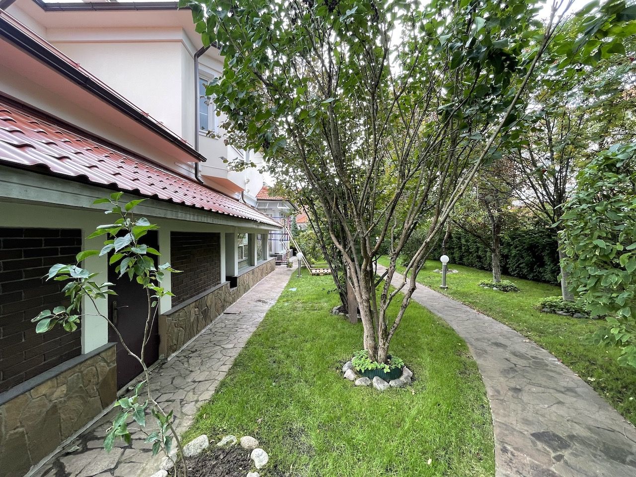 Охраняемый коттеджный поселок Величъ, Уютный дом в семейном коттеджном поселке с высокоскоростным интернетом, элементами умного дома, сигнализацией и кондиционерами. 1 эт: гараж на 2 авто, прихожая, гостиная с фортепиано, каминный зал, кухня, столовая на застекленной веранде с витражом. 2 эт: три спальни, два санузла, гардеробная. Цоколь: кабинет, детская игровая, сауна, комната отдыха, с/уз, постирочная, Купель с подогревом и функцией джакузи, погреб, современный кинозал. На участке: летняя кухня с барбекю, тандыром и казаном. кострище, качели и ландшафтный дизайн с плодовыми деревьями и декоративными растениями. Гараж на два машиноместа и подсобное помещение для велосипедов и дров.