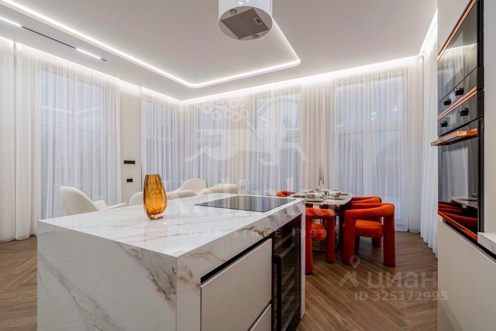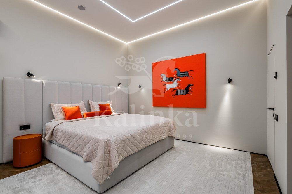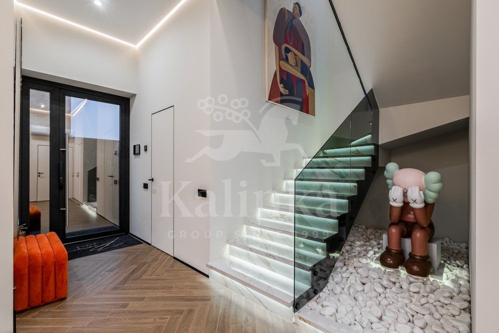 Стильный коттедж площадью 250 кв.м на участке 6 соток в охраняемом поселке Николина Поляна. В доме большая площадь остекления, современный интерьер, полная готовность ''под ключ''. В планировке предусмотрено 4 спальни (одна из них на первом этаже), просторная и светлая столовая-гостиная с выходом на большую террасу (50 кв.м), кухня с островом, а также зона для столовой и гостиной. По всему дому установлен теплый пол, дизайнерские картины и скульптуры (включая скульптуры на участке, в человеческий рост). На террасе установлена уличная мебель.