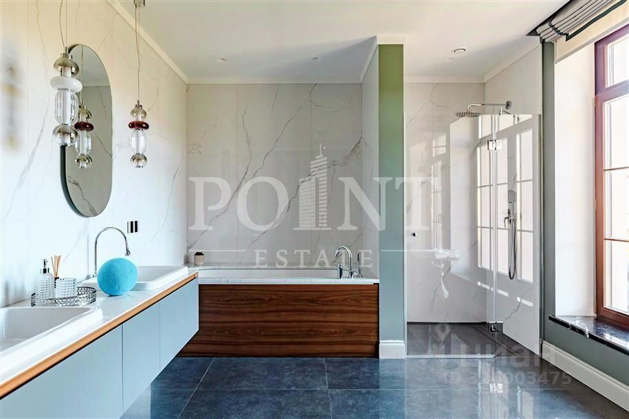 Лот: 98454. Стильный двухэтажный загородный дом площадью 610 кв.м построен на участке 17 соток в поселке премиум-класса ''Ренессанс Парк''. Выполнен дизайнерский ремонт из качественных натуральных отделочных материалов, техники топ-брендов, встроенной мебели и сантехники ведущих европейских производителей, установлено премиальное освещение. Функциональное зонирование внутреннего пространства отвечает всем современным тенденциям в области дизайна интерьеров. На первом этаже находится гостиная с камином, кухня, столовая, спальня, санузел, гардеробная, холл, котельная, постирочная, прихожая, терраса, гараж на два машино-места. Второй этаж занимают четыре спальни, две из которых с индивидуальными гардеробными и санузлами, санузел, холл, блок для персонала, два балкона. Поселок находится в окружении вечнозеленого леса и живописных подмосковных пейзажей. На территории: спортивные площадки и теннисный корт, детский клуб и игровые площадки, песчаный пляж у озера и ресторан класса люкс.