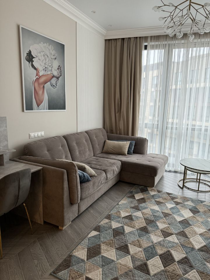 СобственникСдается прекрасная светлая квартира в комплексе премиум класса с дизайнерским ремонтом. Евродвушка, изолированная спальня. Круглосуточная охрана, консьерж, паркинг как на территории так и подземный паркинг.