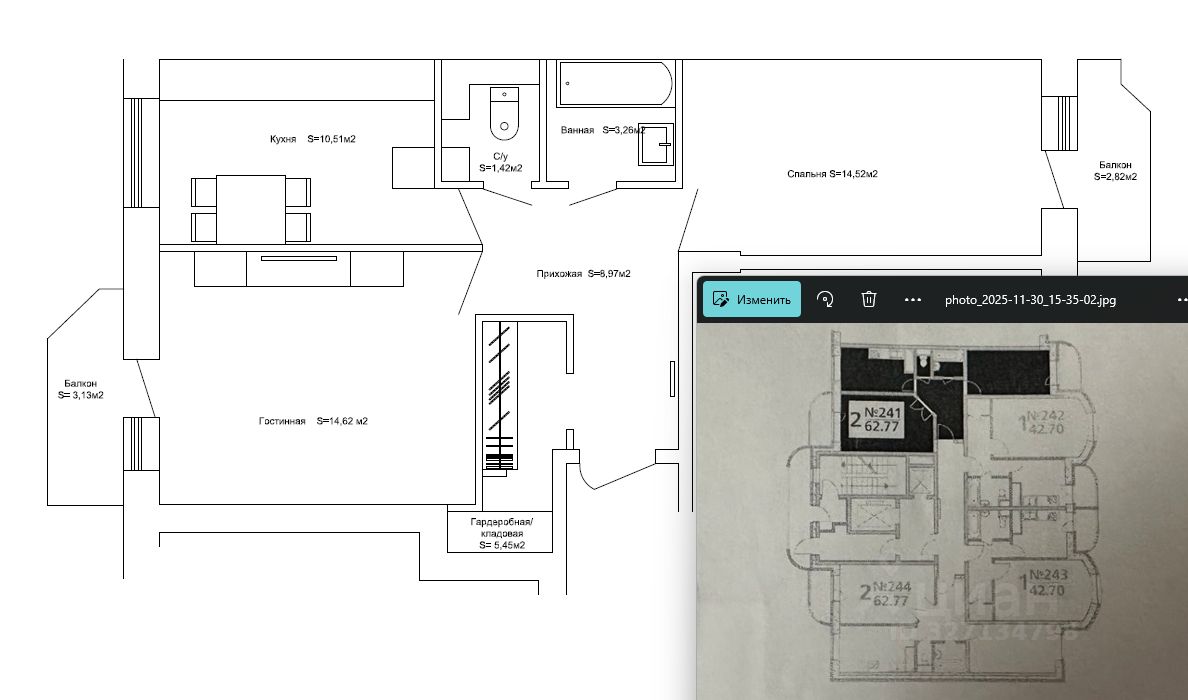 Общая площадь62,6 м2