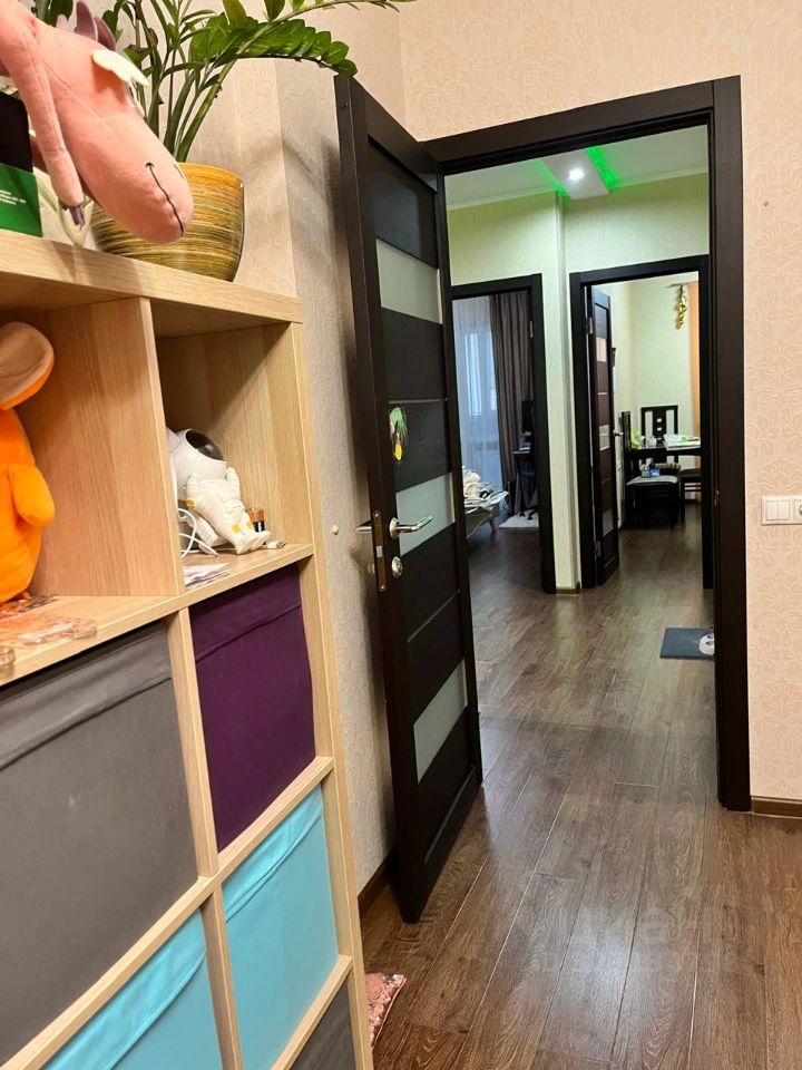 Доброго дня. Продаем двухкомнатную квартиру, 1 собственник, дом 2013г постройки. Квартира уютная, распашонка. В квартире 2 балкона, потолок из алюминиевой рейки, пол из плитки, со стороны спальни, теплый пол, стены с обоями, как в комнате. Гардеробная с вместительной нишей, отлично подходит для хранения, потолок алюминиевая рейка. Пол в квартире - ламинат, потолок в корридоре гипсокартон, в остальных комнатах оштукатурен и выравнен. Туалет с гигиенической лейкой и есть ниша для хранения. Большая дверца с удобным доступом к инженерии, скрытая в стене, на фото всё видно. Потолок в туалете и ванной из алюминиевой рейки с точечными светильниками, стены из плитки. В пешей доступности (3 мин) есть парк для прогулок с детскими зонами и зоной барбекю.